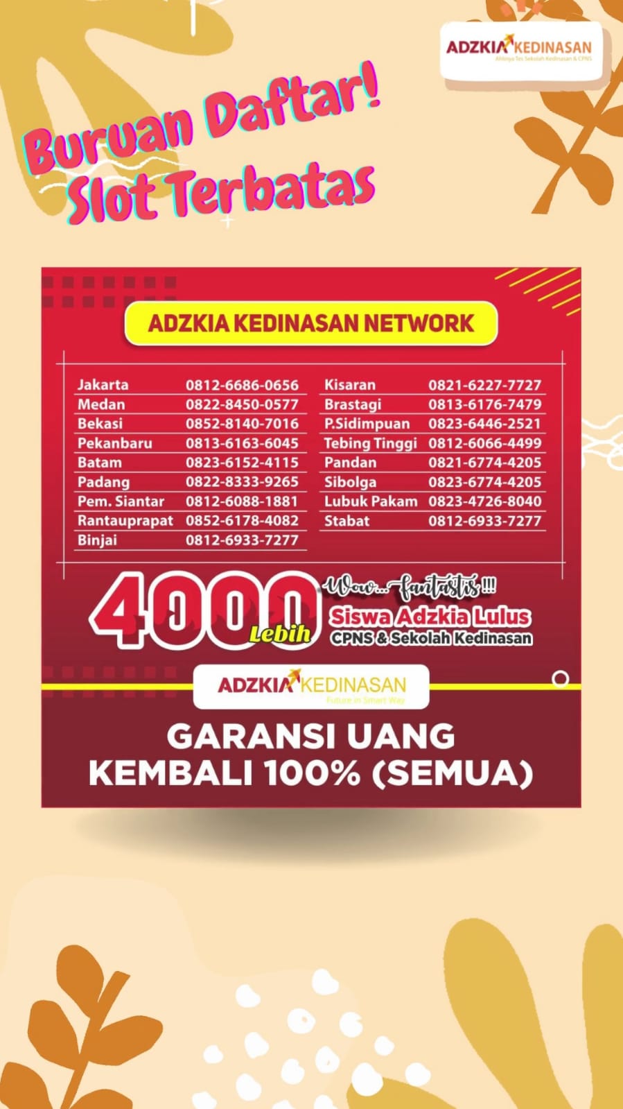 Ayo ikuti jejak 4000 lebih siswa Bimbel Adzkia Kedinasan yang sudah lulus dan sudah jadi PNS